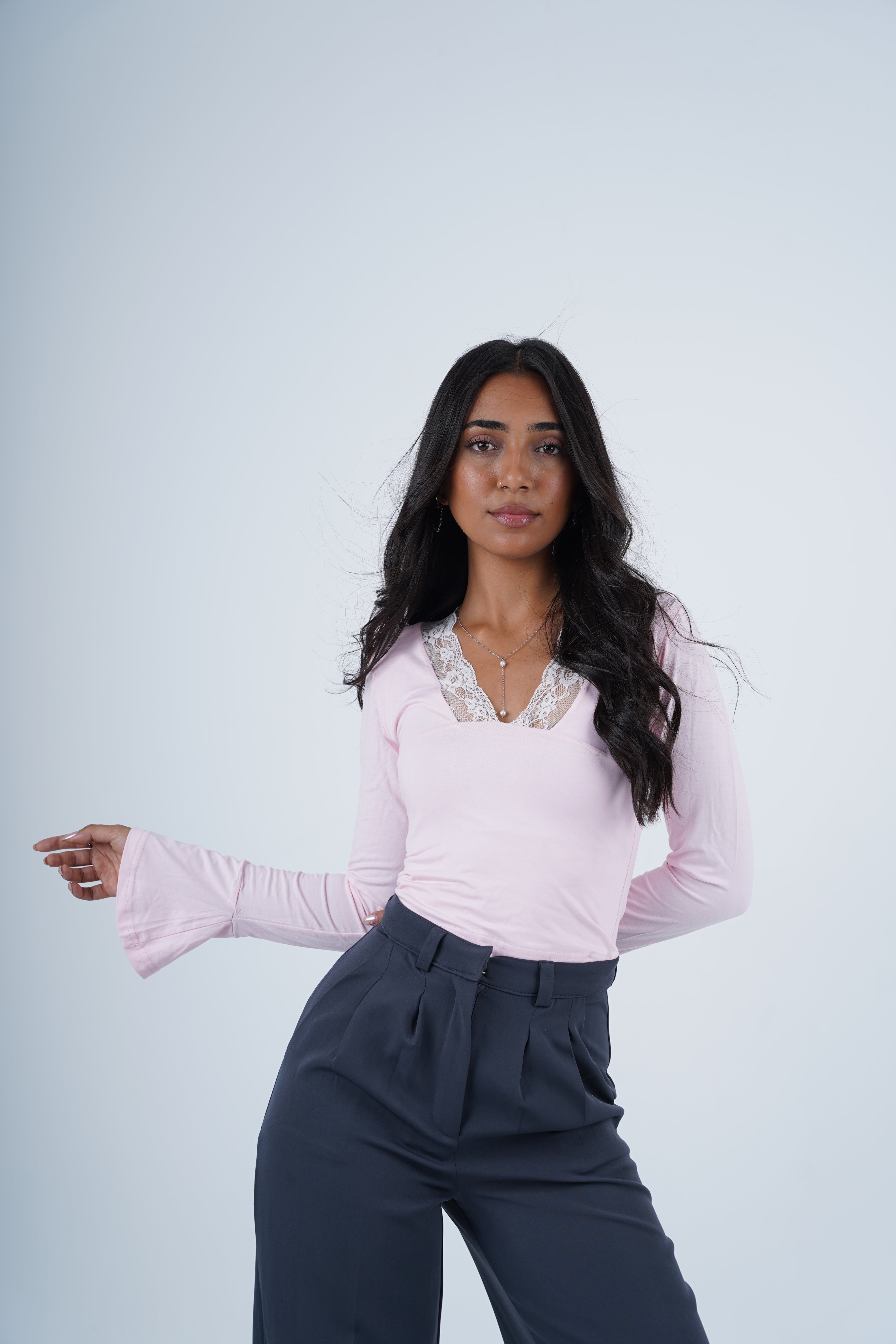 Made from soft, breathable cotton, this blouse features delicate dentil detailing along the décolleté, adding a subtle, sexy texture. The fitted silhouette gently hugs the body while ensuring comfort, making it perfect for both casual and evening looks. Pair with jeans, skirts, or tailored pants for effortless style.