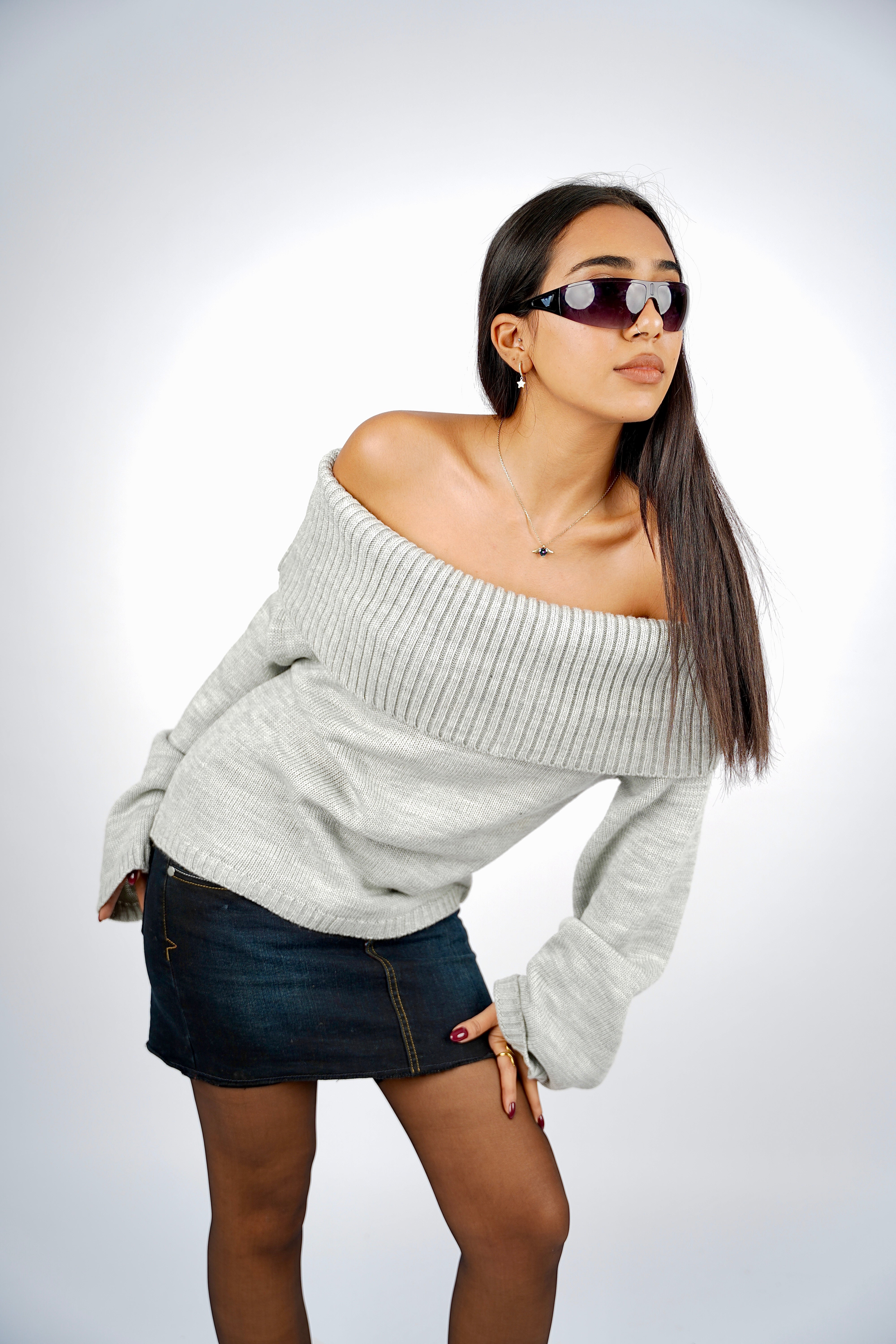 - Add a statement necklace or bold earrings to enhance the off-shoulder design