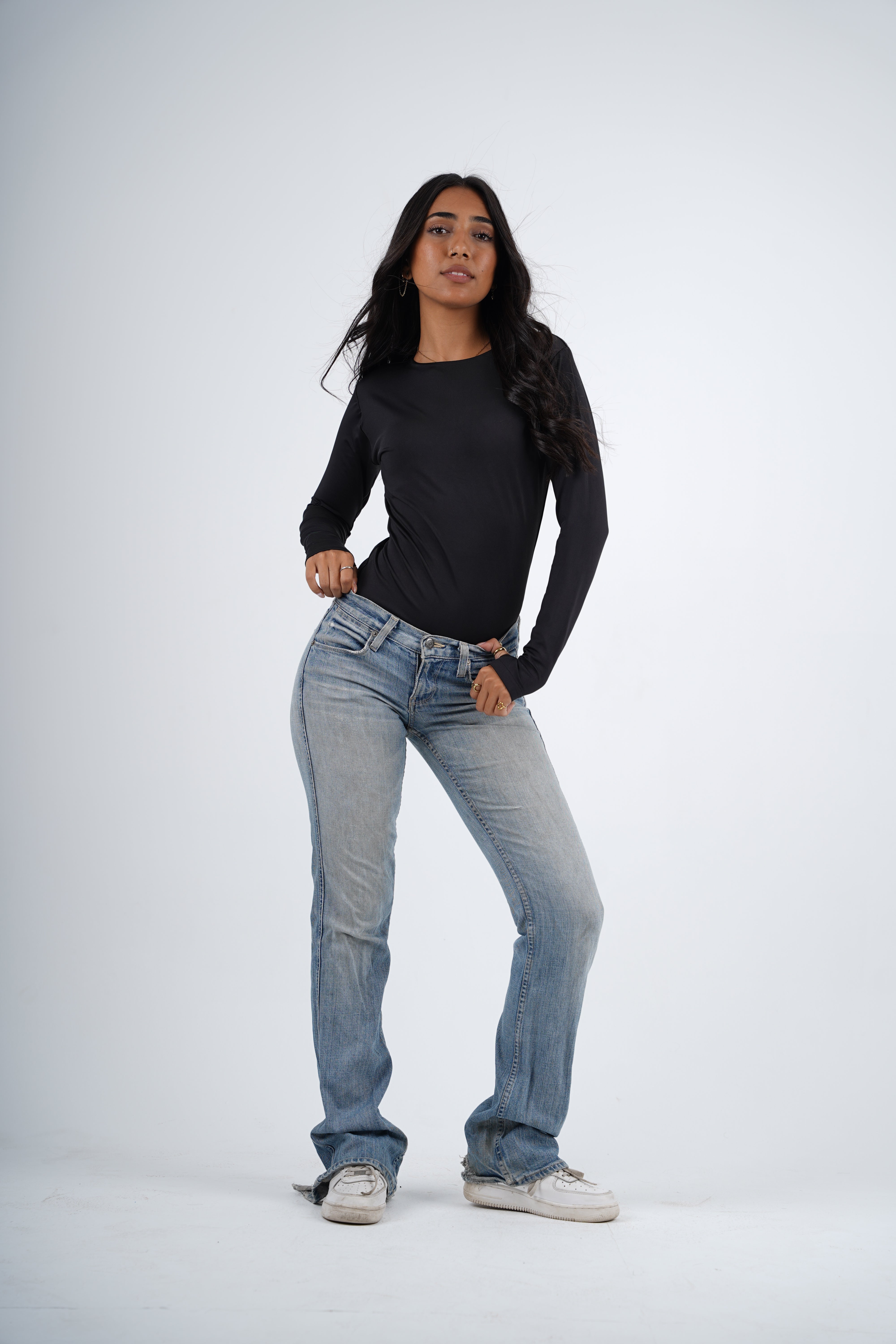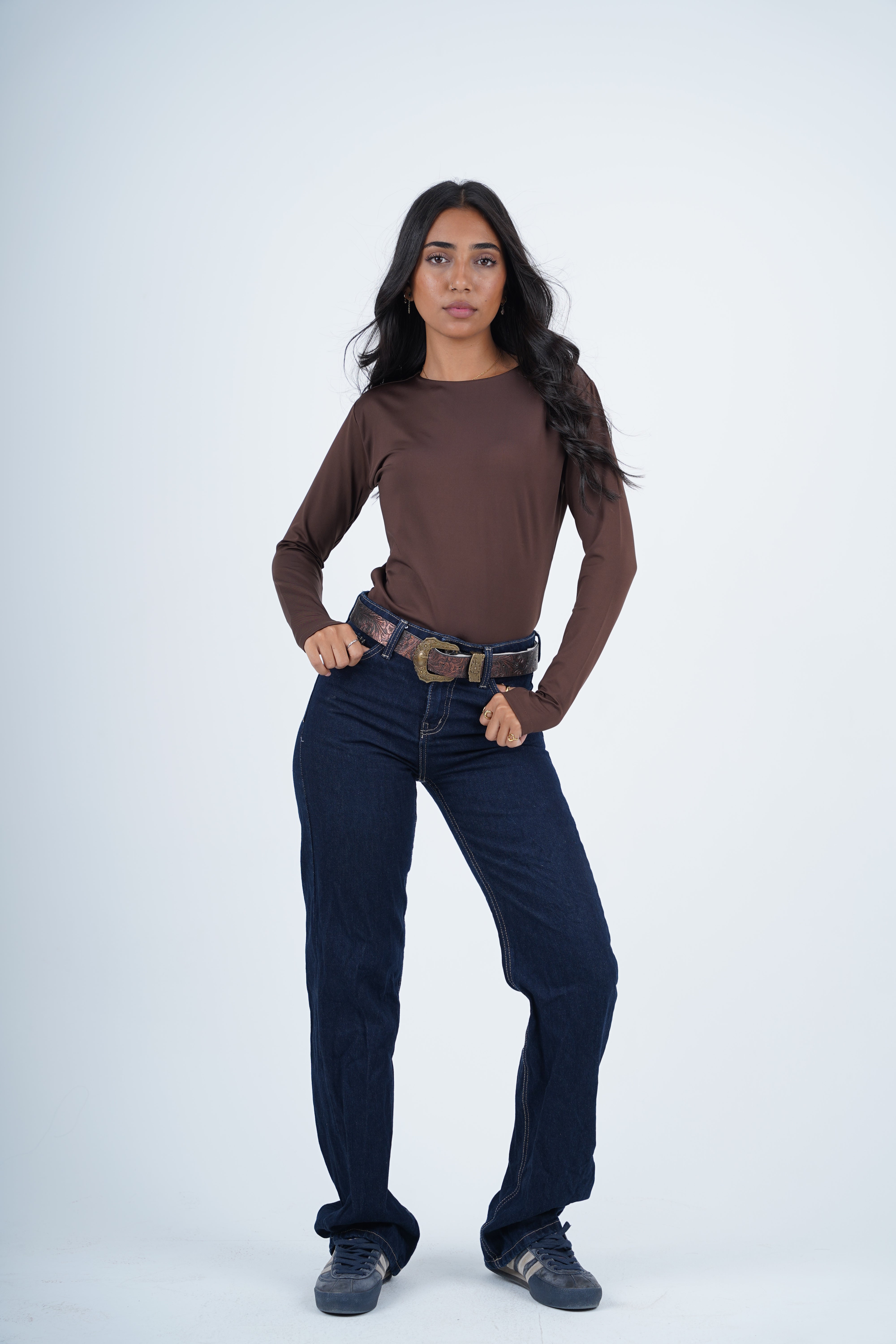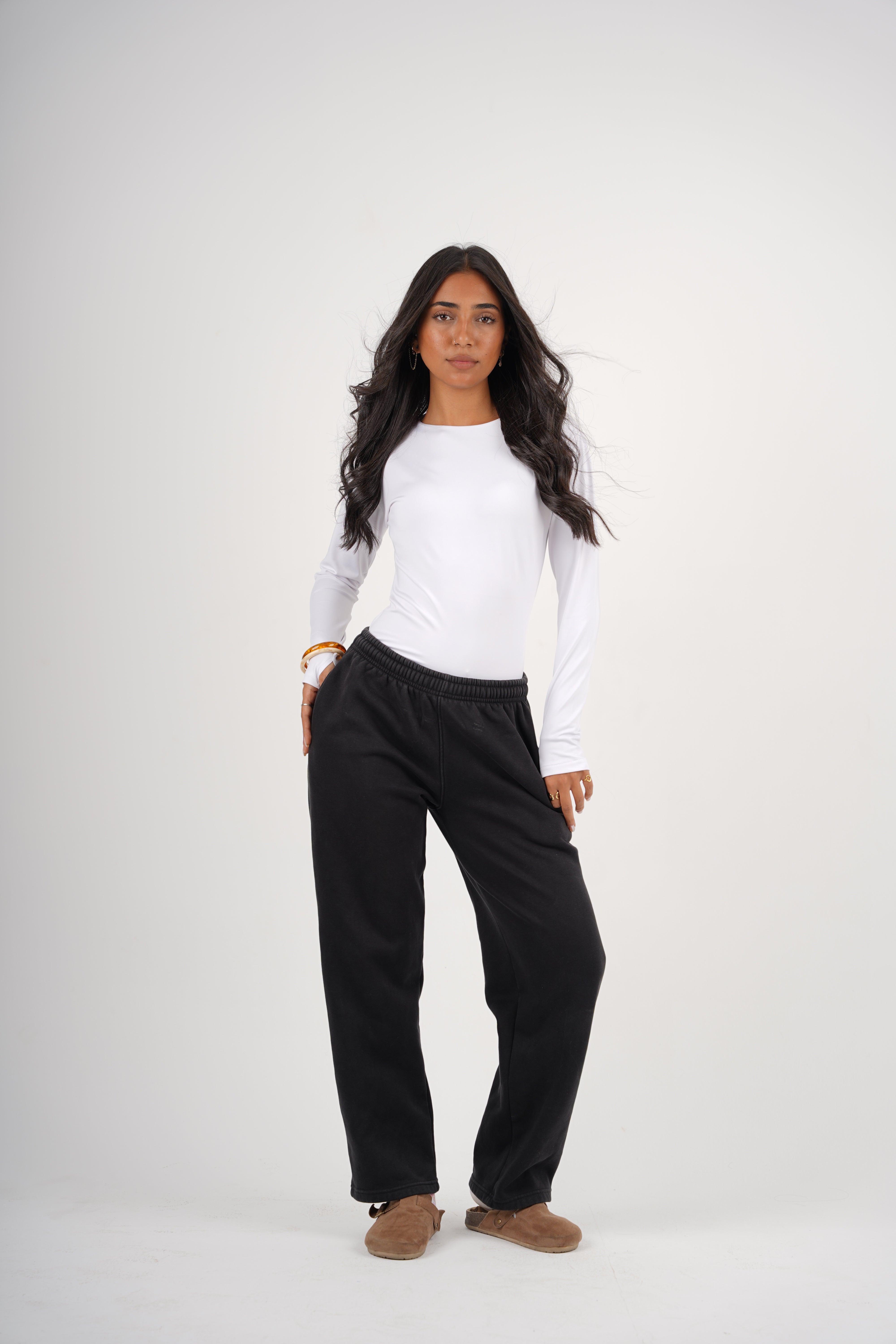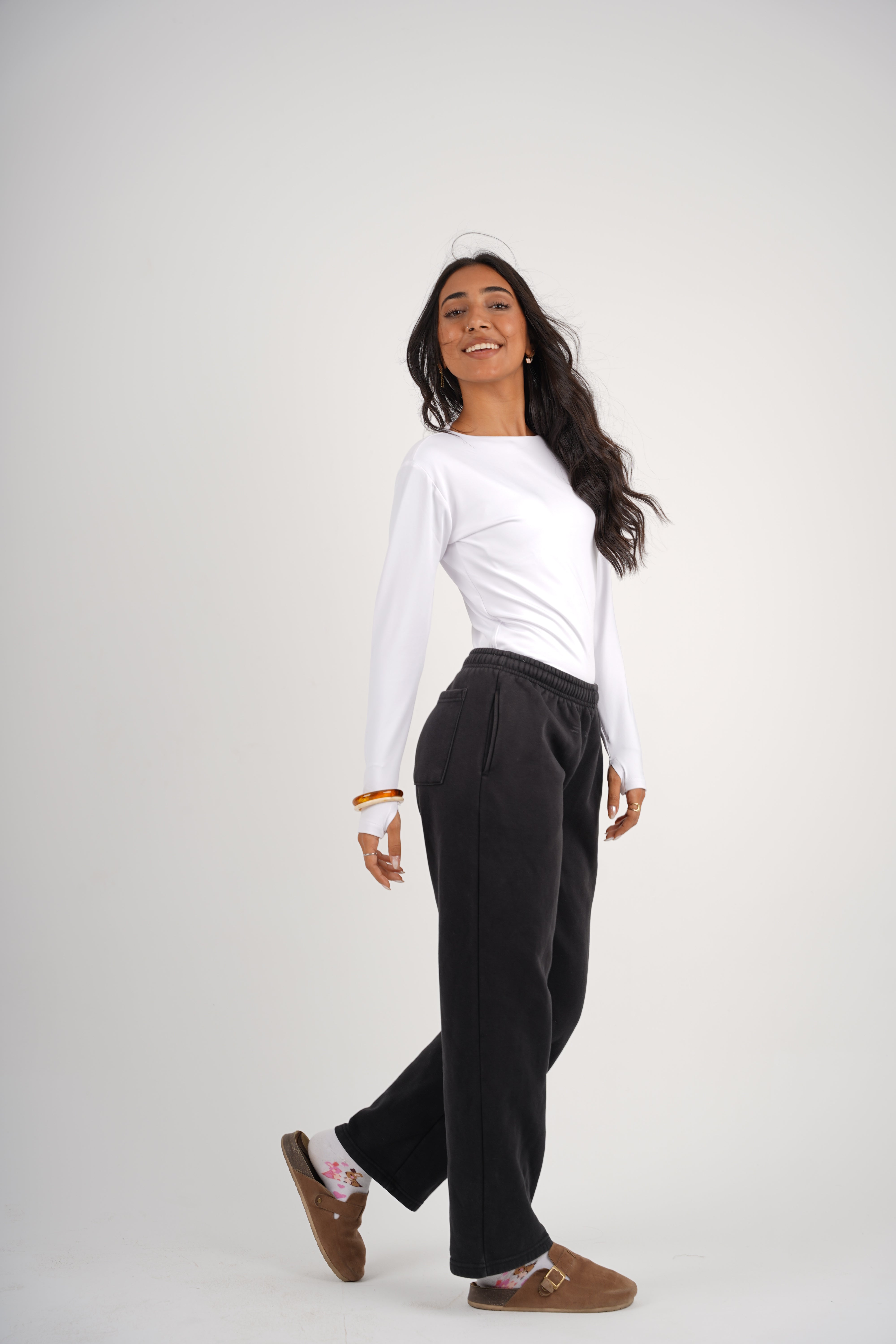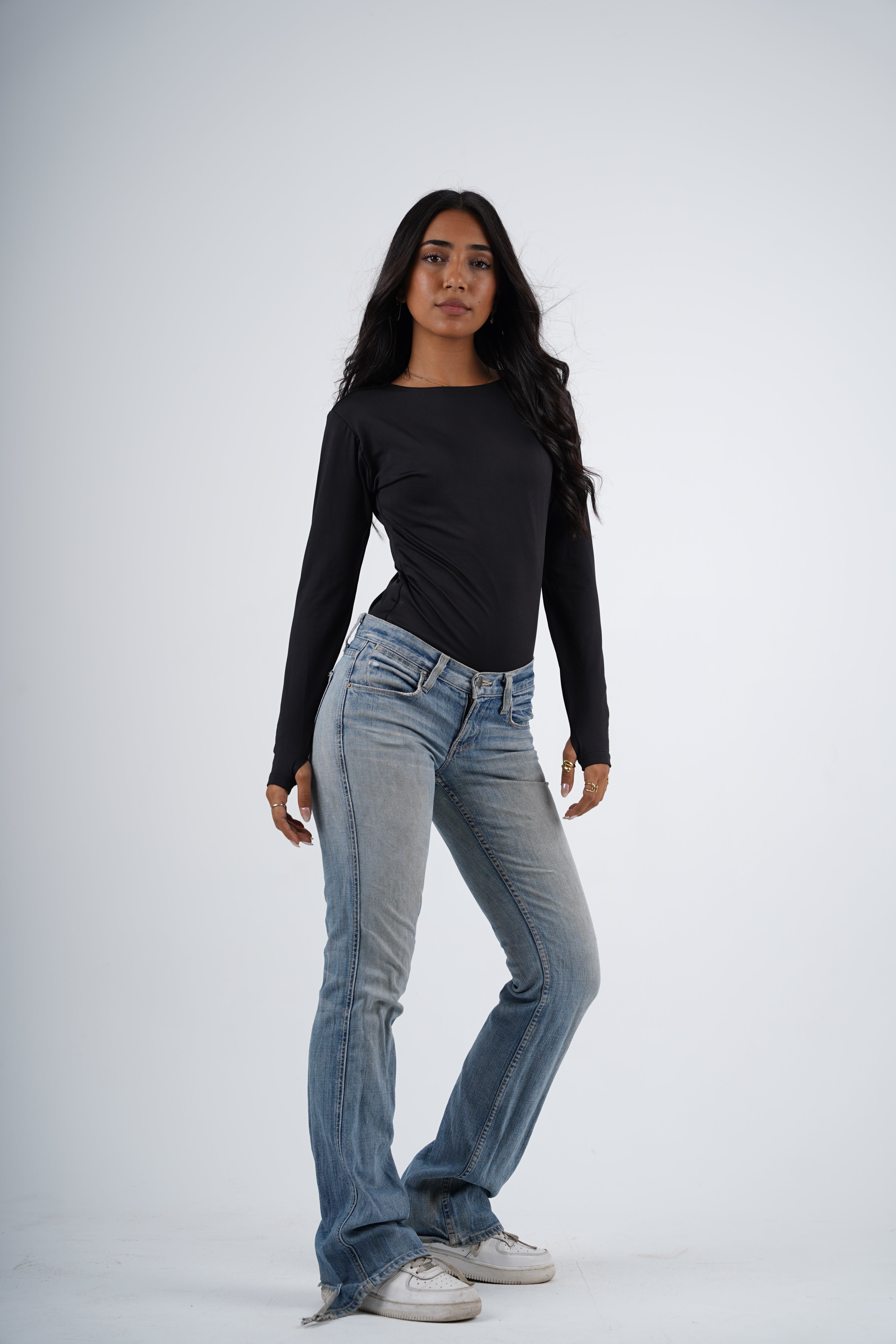 A double-layered round neck top designed for everyday ease and elevated simplicity. The structured silhouette feels smooth against the skin, while the open-finger sleeves add a modern, understated edge. A timeless essential that balances comfort, shape, and style.