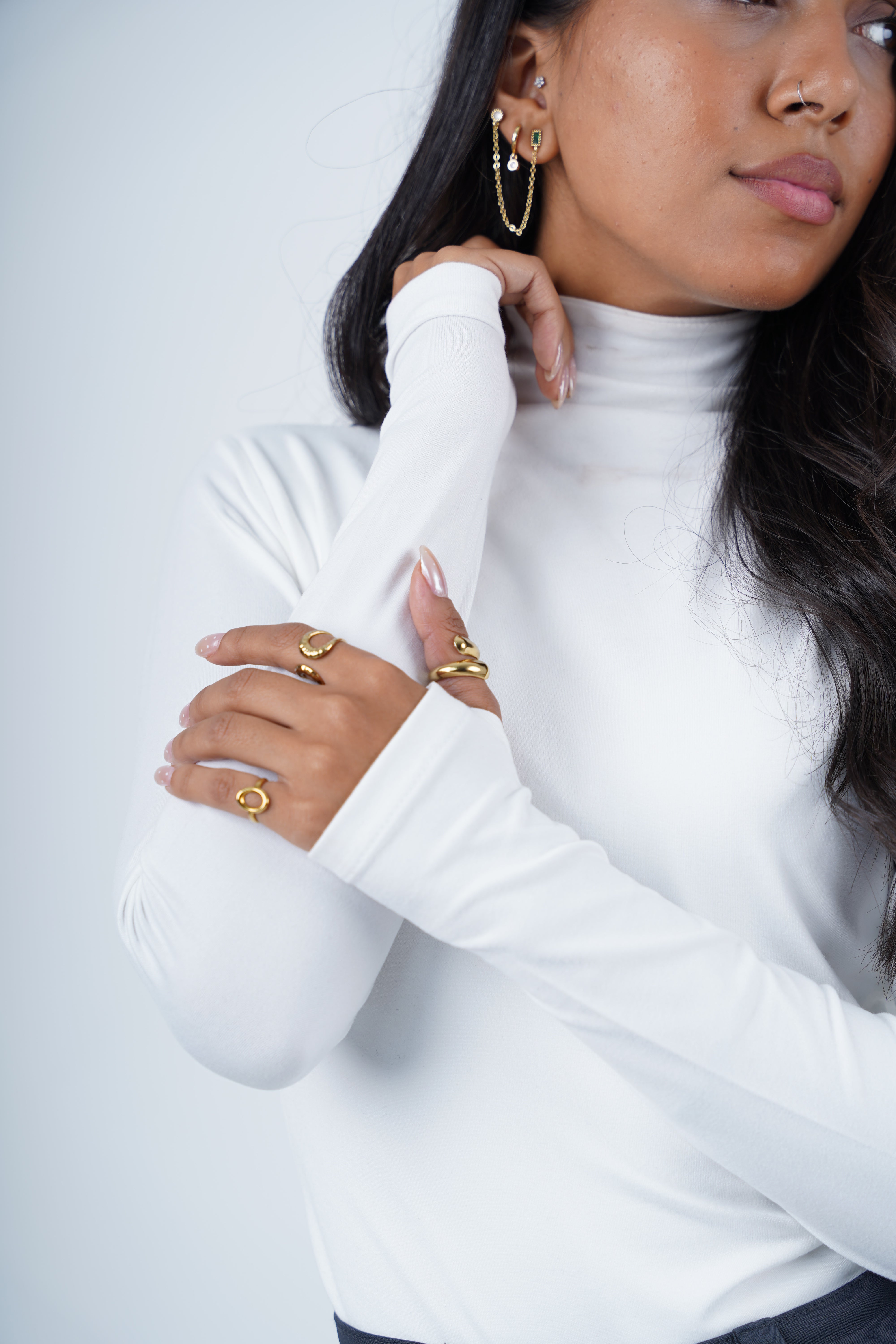 A double-layered 100% cotton high neck with open-finger sleeves — soft, structured, and effortlessly cool. Designed for comfort, confidence, and everyday style.